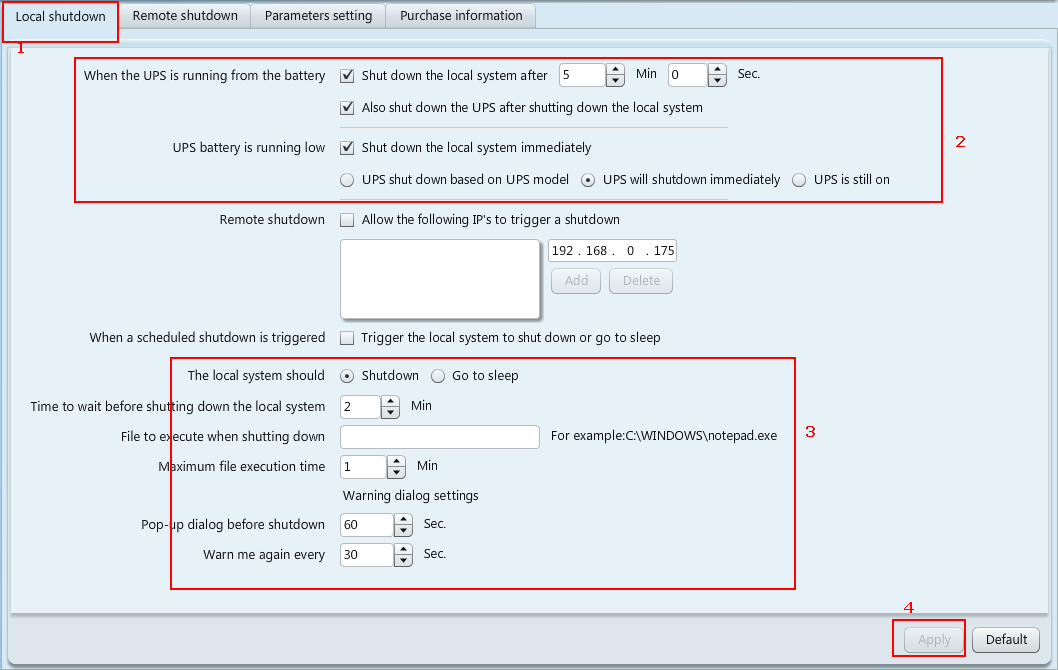 5. 交流電源關(guān)閉后,關(guān)機(jī)命令從192.168.0.175發(fā)送到192.168.0.180和192.168.1.168,然后自動(dòng)關(guān)機(jī),最后UPS關(guān)機(jī)。